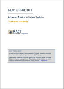 The RACP Advanced Training in Nuclear Medicine program is overseen by the RACP Training Program Committee (TPC), which is responsible for ensuring the program is delivered in accordance with these accreditation standards and educational requirements.