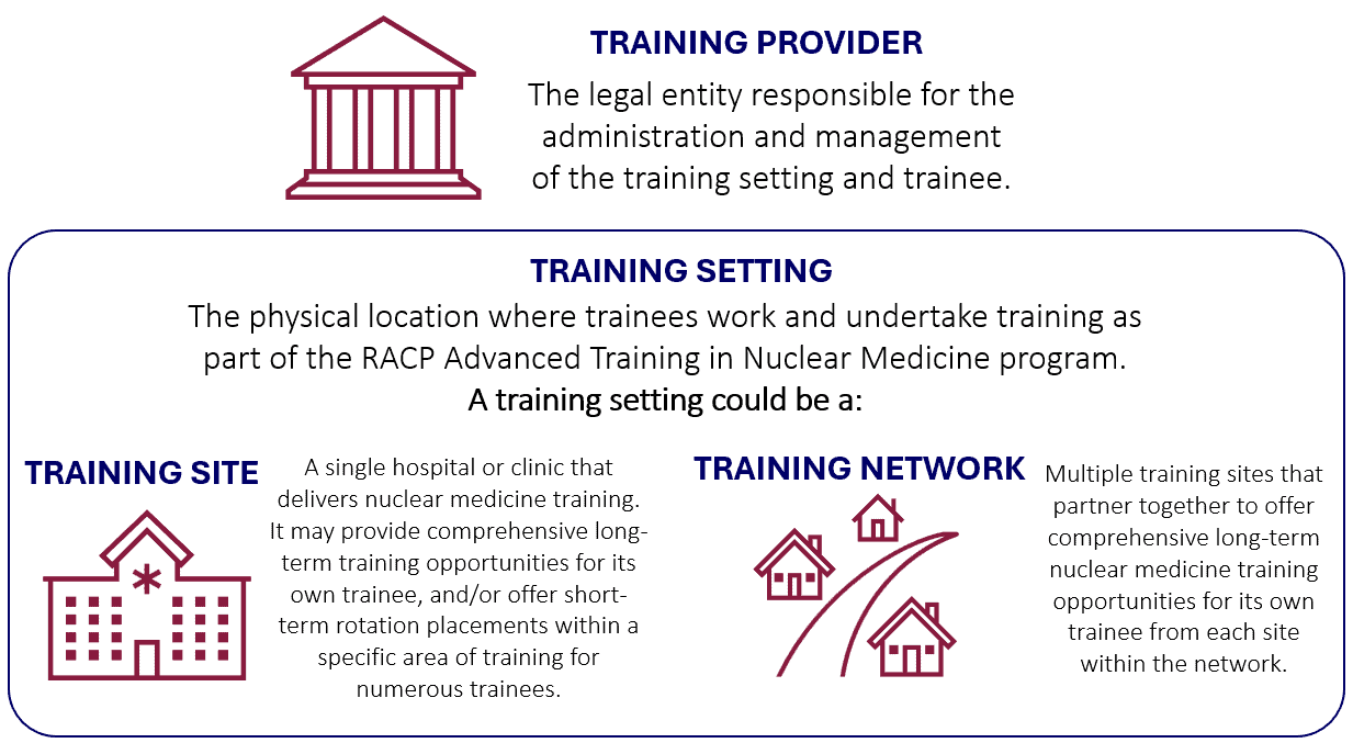 Specialist medical colleges are required to maintain clear, transparent processes and criteria for assessing, accrediting and monitoring training settings. RACP is required to ensure that any hospital, health service or setting delivering RACP physician training meets the standards necessary to provide safe, high‑quality, workplace‑based education.